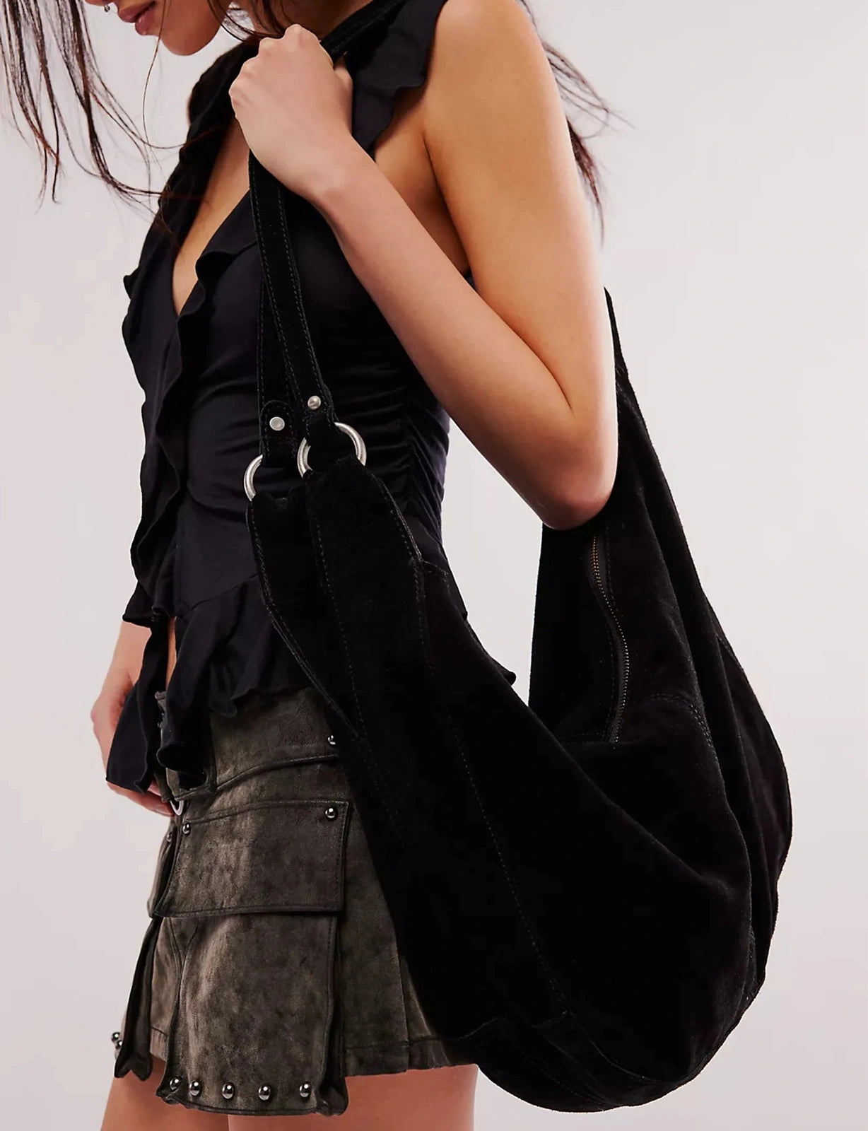 Free People Roma Suede Tote in Black.