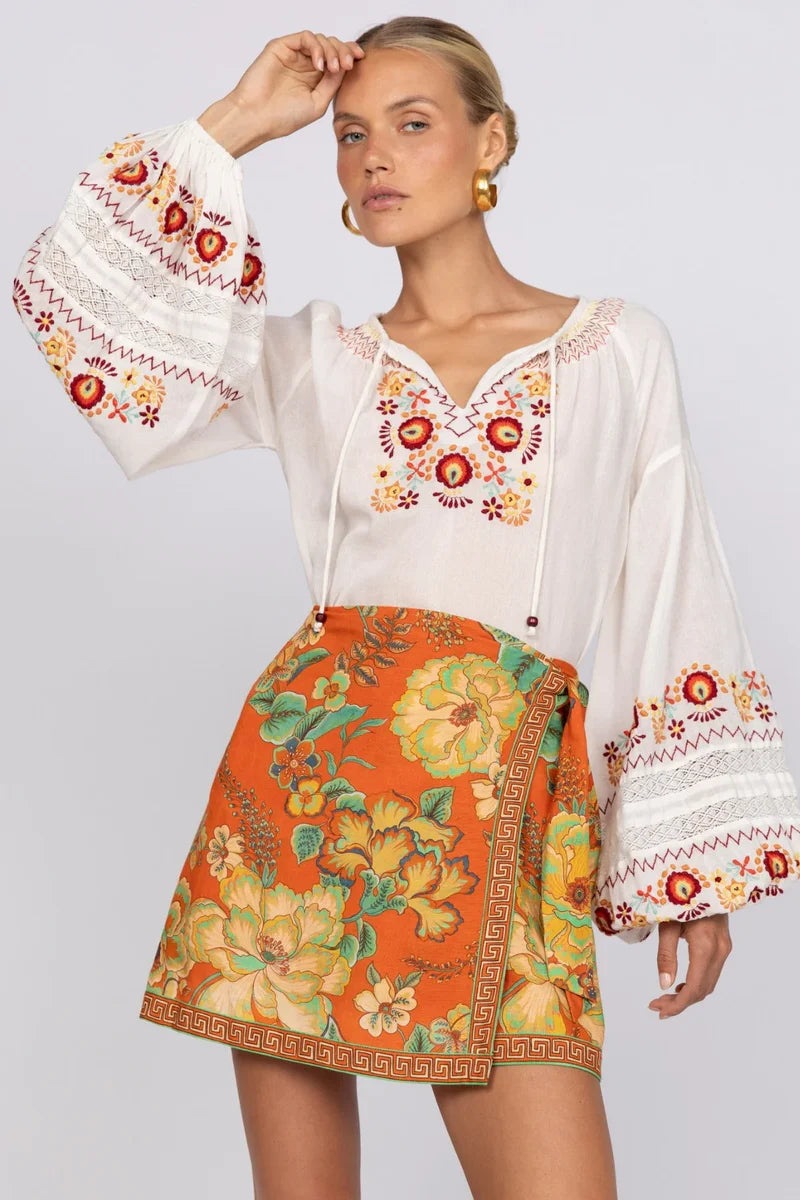 The Iris blouse is a timeless staple adorned with vintage-inspired lace and smocking details and intricate hand-drawn embroidery. This blouse blends delicacy with everyday wearability so we just know it’s a piece you’ll reach for every season. Pairs perfectly with all your denim bottoms.