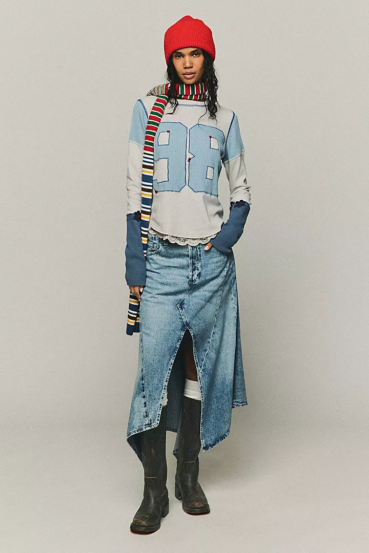The definition of classic, this denim skirt from We The Free features an asymmetrical, handkerchief-inspired design with pointed hem and flattering seaming for added shape.