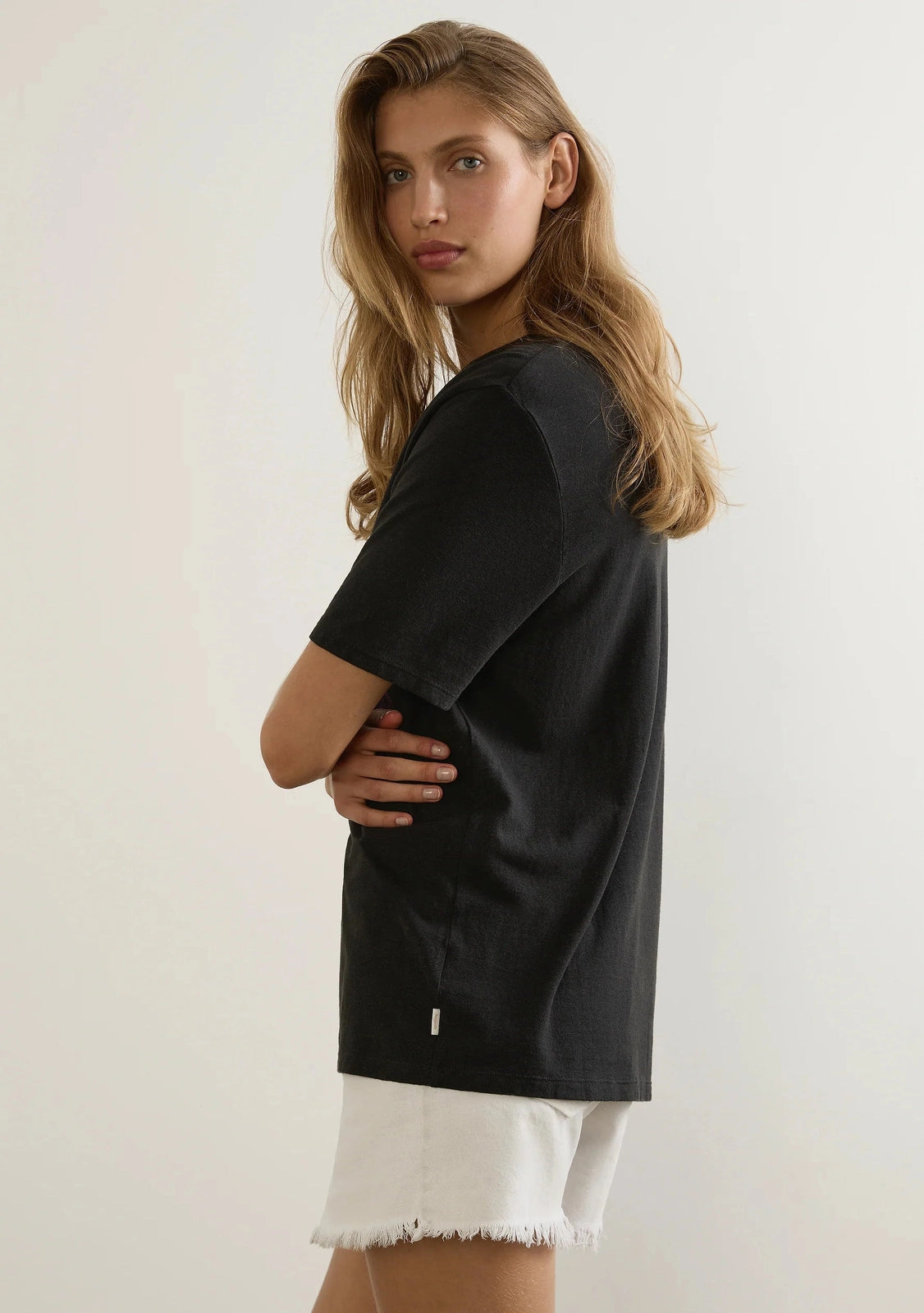 The Mystique Classic Tee in black is an everyday essential with a luxe, laid-back feel. Crafted from a sustainable hemp and organic cotton blend, it features a classic crew neckline and a true-to-size fit. The perfect piece to pair back with denim or floaty skirts, it’s a timeless staple for every wardrobe.