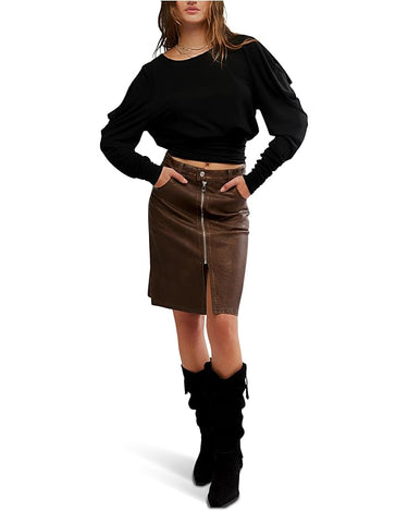 - The Free People™ Moxie Long Sleeve top features intentional draping that creates a bubbled bodice, voluminous shoulders, and fitted forearms for a striking silhouette. The boat neckline and modern mutton sleeves add vintage-inspired drama, while a banded hem and keyhole detail at the back offer subtle structure.